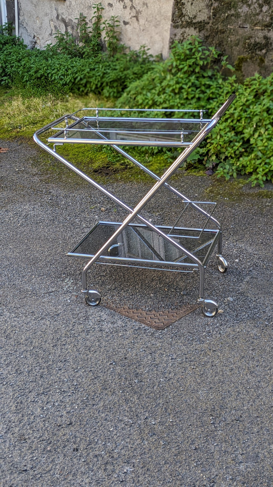 Desserte Vintage Inox & Verre Fumé – Années 50