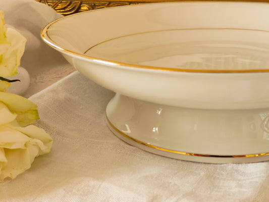 Assiette à piédouche / compotier en porcelaine de Limoges
